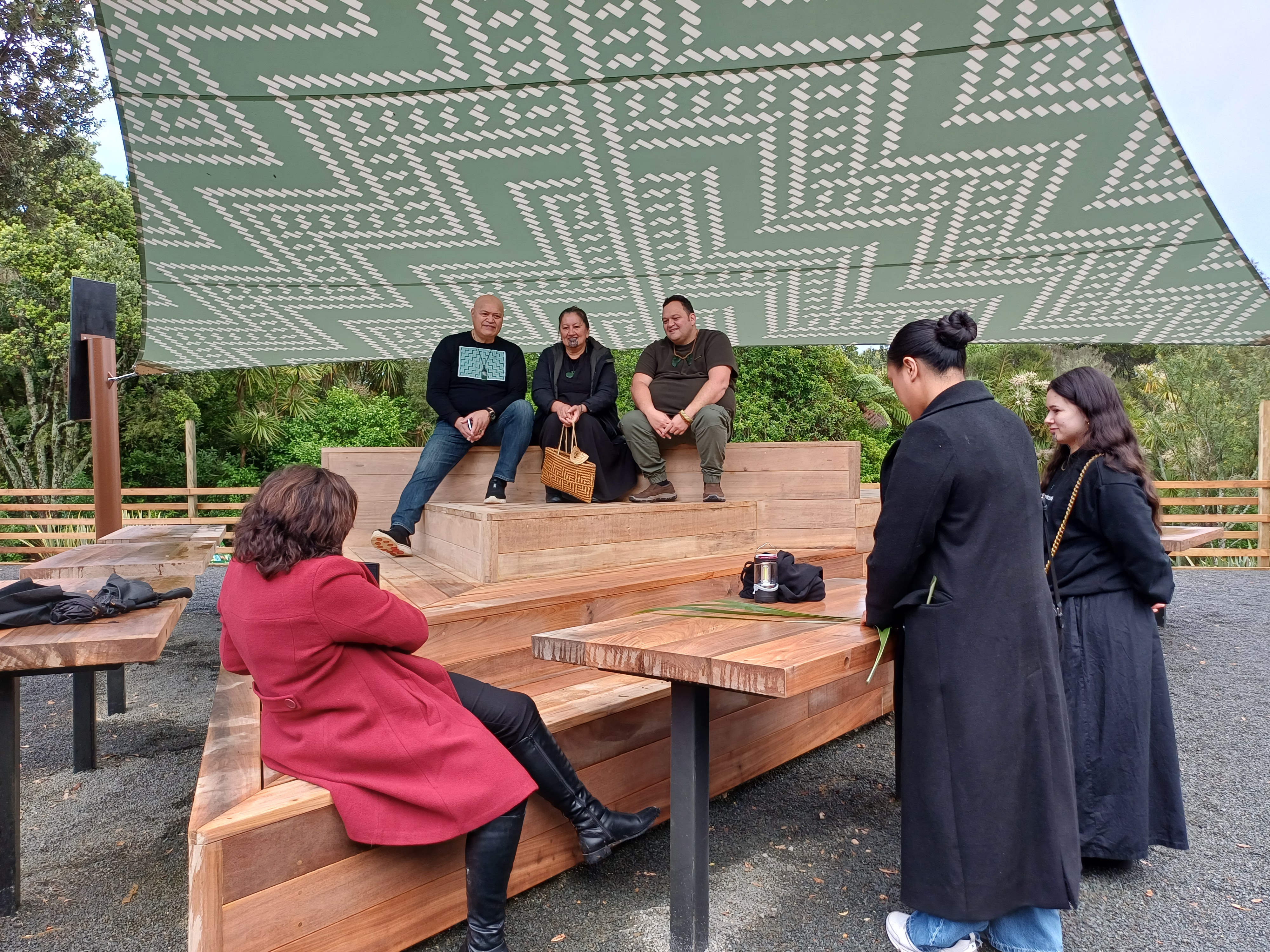 In October 2025, Te Puna Raranga was opened. This is a shelter deeloped with our weaving community to provide a place for teaching, workshops and education. We encourage weavers to use Te Puna Raranga and visitors are welcome to check out the shelter. Please follow the tikanga (protocols) gifted to this place, which are on the signs at the entrance to the shelter. Tikanga includes things like no eating within the shelter.