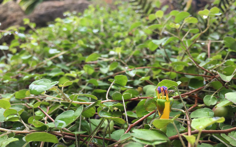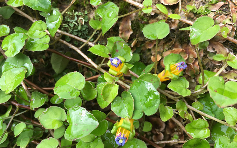 A low growing scrambling plant with small rounded