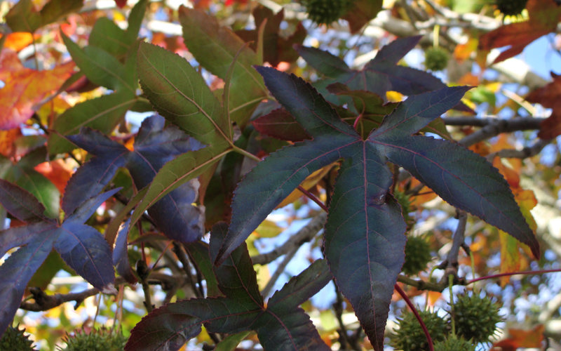 Rather glossy, maple-like, 5 to 7-lobed leaves which turn to shades of